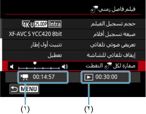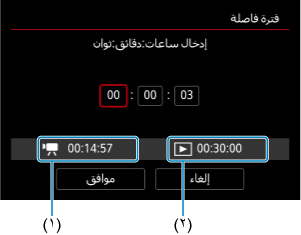 وتحقق جيدًا من الوقت المطلوب (١) والفاصل الزمني (٢) المعروض على الشاشة.