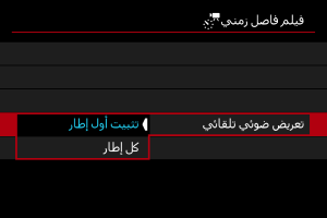 - لإلغاء تسجيل أفلام بفاصل زمني، اضبط [فاصل زمني] على [تعطيل].