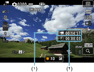 - في حالة بدء تسجيل فيلم بفاصل زمني أثناء عرض أيقونة [