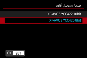 حدد تنسيق تسجيل الأفلام.