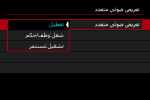 - للخروج من تصوير درجة الإضاءة المتعددة، حدد [تعطيل].