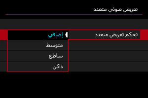 عرض إعدادات عدد الإطارات] على [سلس] عند ضبط [تعريض ضوئي متعدد] على خيار آخر غير [تعطيل].