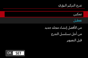 : تدرج التركيز البؤري] يتحول إلى [تعطيل] عند ضبط مفتاح التشغيل على