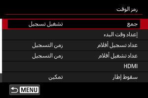 - يتم دائمًا إضافة رموز الوقت إلى ملفات الأفلام، بغض النظر عن الإعداد [عداد تسجيل أفلام].