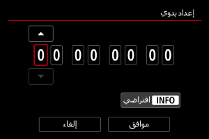 إعادة ضبط الوقت المحدد باستخدام [إعداد دخل يدوي] أو [ضبط إلى وقت الكاميرا] على "00:00:00." أو "00:00:00:" ().