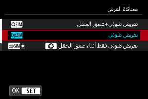 ] معتمًا في حالة توقف التعرض الضوئي أو محاكاة عمق المجال، أو إذا توقفت كلتا المحاكاة.