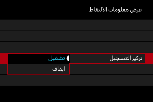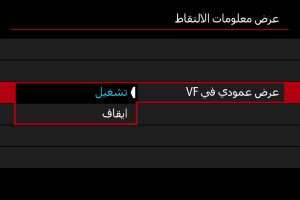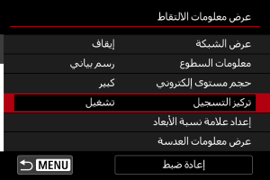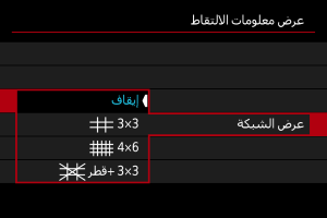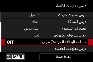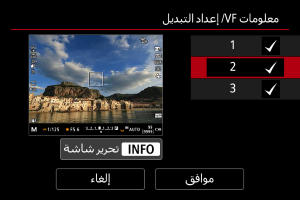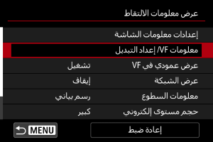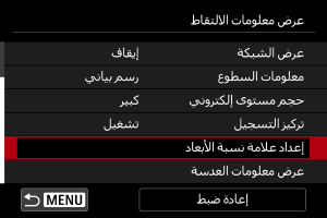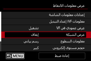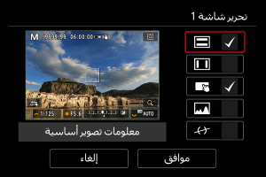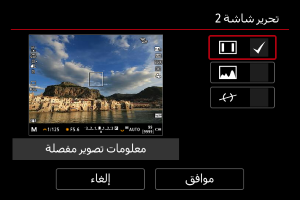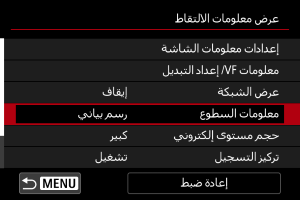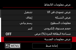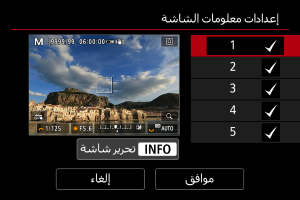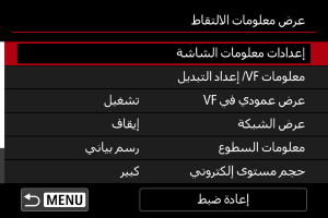 لأعلى أو لأسفل لاختيار شاشات المعلومات التي سيتم عرضها على الكاميرا.
