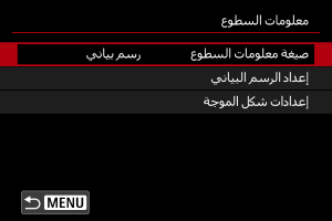 يمكنك ضبط تنسيق معلومات السطوع (الرسم التوضيحي أو شاشة الشكل الموجي) المتاح عند الضغط على الزر في وضع الاستعداد للتصوير.