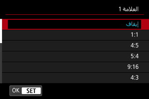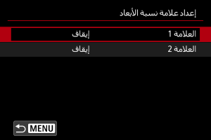 عند تغيير نسبة الأبعاد أثناء تحرير الفيلم المسجل، يمكنك عرض ما يصل إلى علامتَي نسبة أبعاد على شاشة تسجيل الفيلم (أثناء وضعي الاستعداد والتسجيل) حتى يتسنى لك معرفة زاوية العرض النهائية بعد التحرير.