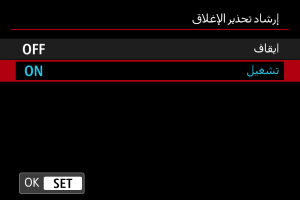 : إرشاد تحذير الإغلاق] على [ايقاف].