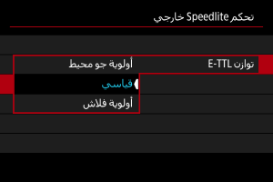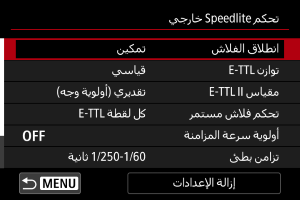 : تحكم Speedlite خارجي] بالكاميرا. اضبطه مباشرة على Speedlite.