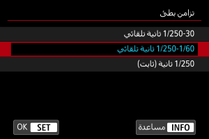 - لا يتوفر التزامن عالي السرعة في الوضع P أو الوضع Av عند الضبط على [1/* ثانية (ثابت)].