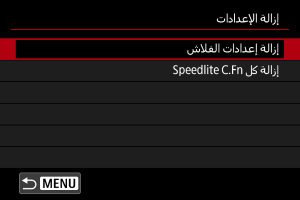 - حدد [إزالة إعدادات الفلاش] أو [إزالة كل Speedlite C.Fn].