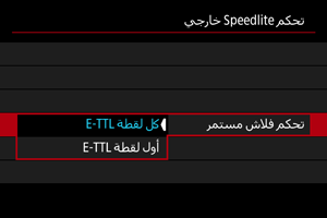 - اضبط على [كل لقطة E-TTL] لقياس الفلاش لكل لقطة.