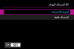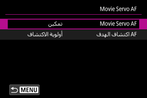 يمكنك تحديد ما إذا كنت تريد استخدام Movie Servo AF، إذا لم يتم اكتشاف الهدف المضبوط على [: الهدف المراد اكتشافه] ().
