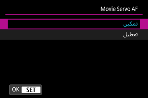 يتم استخدام Movie Servo AF للأهداف التي تم ضبطها على [