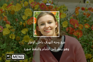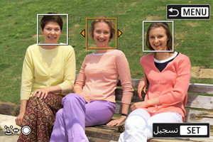 يظهر إطار أبيض مع [] على أي وجوه مسجلة يتم اكتشافها على شاشة التصوير. لاحظ أن [