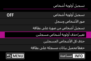 حدد [تغيير/حذف أولوية أشخاص مسجلين].