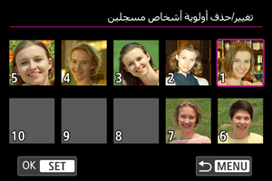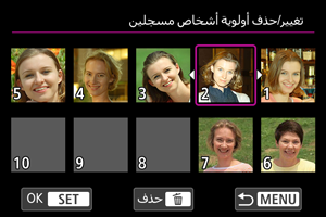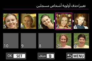 يمكنك تغيير أولوية الكشف عن طريق إعادة ترتيب الأشخاص المسجلين. كما يمكنك إزالة الأشخاص المسجلين.