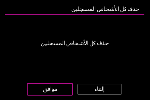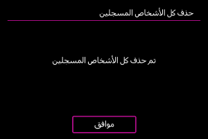 - يمكنك كذلك مسح معلومات جميع الأشخاص المسجلين عن طريق إجراء [إعادة ضبط المصنع] ضمن [