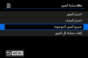 : حماية الصور]، ستتم حماية كل الصور الموجودة في المجلد أو على البطاقة.