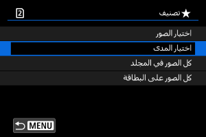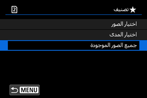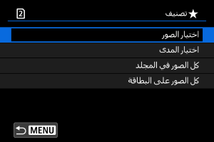 : تصنيف]، عندما تحدد [كل الصور في المجلد] أو [كل الصور على البطاقة]، سيتم تصنيف كل الصور الموجودة في المجلد أو على البطاقة.