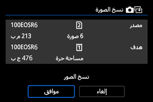 - تحقق من المعلومات الخاصة بالمصدر والبطاقة المستهدفة، ثم حدد [موافق].