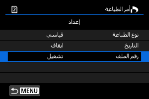 - قم بإعداد الخيارات [نوع الطباعة] و[التاريخ] و[رقم الملف].