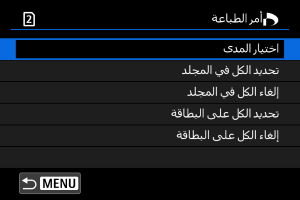 إذا حددت [إلغاء الكل على البطاقة]، فسيتم مسح أمر طباعة كل الصور الموجودة على البطاقة.