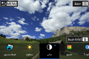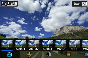 يمكنك اختيار [VIVID] أو [SOFT] أو غيرها من المؤثرات المحددة سلفًا. [AUTO1] و[AUTO2] و[AUTO3] هي تأثيرات توصي بها الكاميرا بناءً على ظروف الصورة.