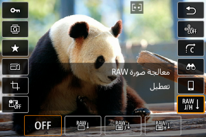 يمكنك تحديد نوع معالجة صور RAW التي يتم تنفيذها من شاشة التحكم السريع.