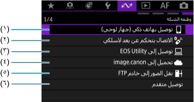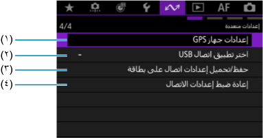 - لا يمكن تكوين بعض عناصر القائمة أثناء توصيل الكاميرا بأجهزة كمبيوتر أو أجهزة أخرى عبر كبل واجهة.