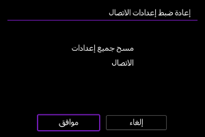 يمكن إزالة جميع إعدادات الاتصال اللاسلكي. بحذف إعدادات الاتصال اللاسلكي، يمكنك منع تعرض معلومات الإعدادات للكشف عند إعارة أو إعطاء الكاميرا للآخرين.