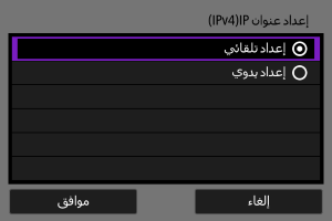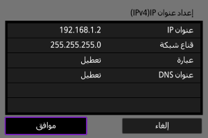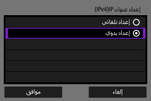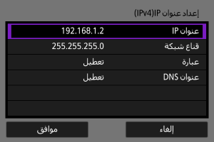 قم بضبط إعدادات عنوان IP يدويًا. لاحظ أن العناصر المعروضة تختلف حسب وظيفة الاتصال.