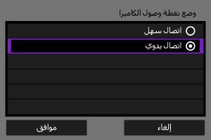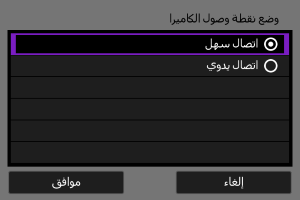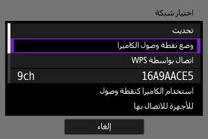 حدد [وضع نقطة وصول الكاميرا] على شاشة [اختيار شبكة].