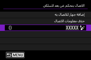 يتم الاحتفاظ بإعدادات الاتصال الخاصة بالأجهزة التي اتصلت بها من خلال Wi-Fi أو Bluetooth على الكاميرا. ويمكنك استخدام هذه الإعدادات لإعادة الاتصال بالجهاز ذاته.