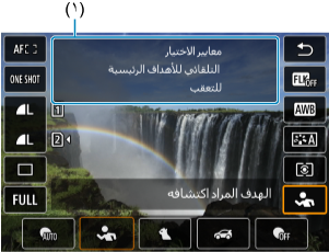 يمكن عرض وصف مختصر للوظائف والعناصر عند ضبط وضع التصوير أو استخدام التحكم السريع.