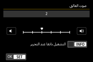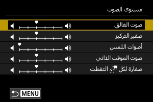 يمكن ضبط مستوى الصوت لأصوات الكاميرا.