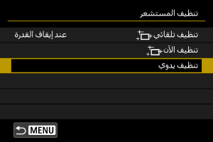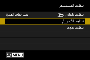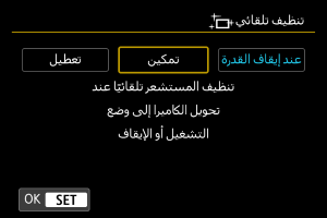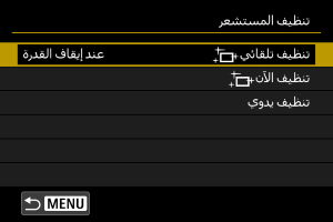 - عند الضبط على [عند إيقاف القدرة] أو [تمكين]، يتم تنظيف المستشعر عند إيقاف تشغيل الشاشة، بما في ذلك عند إيقاف تشغيلها تلقائيًا.