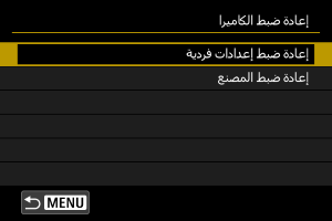 1. حدد [الإعداد: إعادة ضبط الكاميرا] ().