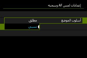 تتحرك نقطة AF في اتجاه السحب، بمقدار مناظر لمقدار السحب، بغض النظر عن مكان اللمس على الشاشة.