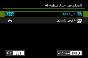 ] إلى [يكون وضع التركيز البؤري AF عند استخدامها كحلقة تحكم].