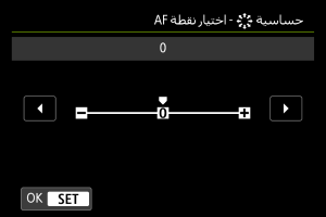 للحصول السريع على موضع نقطة AF، اضبطه باتجاه الطرف الموجب، ولتحديد هذا الموضع ببطء، اضبطه باتجاه الطرف السالب.