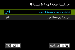 يمكنك ضبط مستوى حساسية حلقة ضبط البؤرة بعدسة RF.