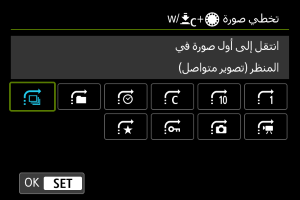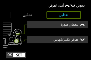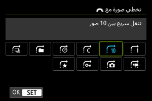 لتعيين طريقة التنقل السريع للكاميرا عبر الصور، يمكنك تدوير القرص أثناء الضغط على الزر المخصص لـ [