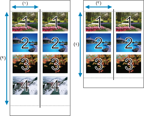 طباعة مجموعتين من الصور المحددة على ورقة واحدة بحجم L أو ورق بحجم البطاقة البريدية ().