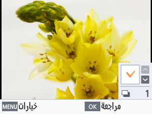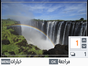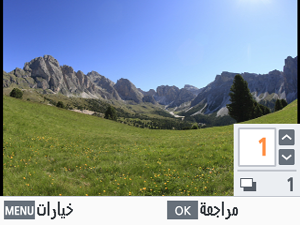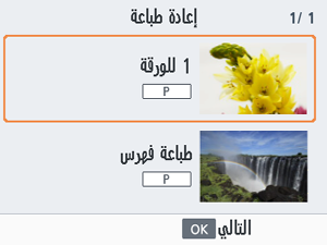 - اختر الصور، كل منها بكمية نسخ مطبوعة بمقدار [1]. بالنسبة للورق بحجم L، اختر ما يصل إلى ٣ صور وللورق بحجم البطاقة البريدية ما يصل إلى ٤ صور.