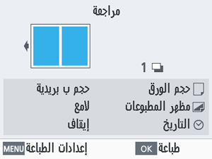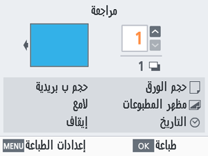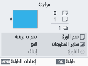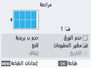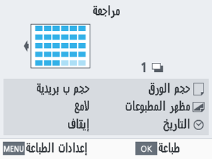 - طالما كانت بطاقة الذاكرة التي تم تكوين معلومات الطباعة الخاصة بها على الكاميرا مدرجة، يمكنك أيضًا الوصول إلى هذه الشاشة باختيار [طباعة DPOF] والضغط على
