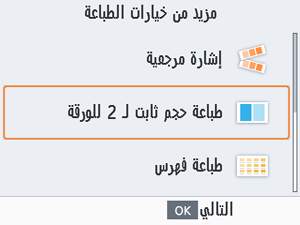 اختر [طباعة حجم ثابت لـ 2 للورقة] واضغط على