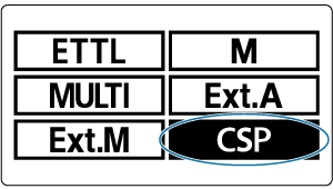 В зависимост от фотоапарата е възможно снимане със светкавица в режим [CSP] (режим с приоритет на серия от снимки). В режим с приоритет на серия от снимки мощността на светкавицата автоматично се намалява с една стъпка в сравнение с нормалното снимане със светкавица, а ISO чувствителността автоматично се повишава с една стъпка. Това е полезно при заснемане на серия от снимки или когато искате да пестите заряда на батерията на светкавицата. За повече информация вижте ръководството за работа с фотоапарата, който поддържа автоматично външно мерене на експонацията на светкавицата.